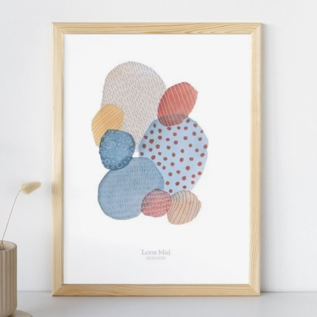 De bløde, flydende penselstræk og de subtile skygger skaber et elegant udtryk, der inviterer til ro og nærvær. Akvarellens lethed gør, at motivet føles luftigt, selvom farverne er dybe. Det er netop balancen mellem dybde og lethed, der gør Blue Nordic så behagelig at have fremme.